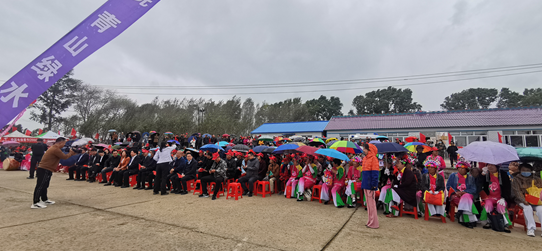 (村民们冒雨观看演出)